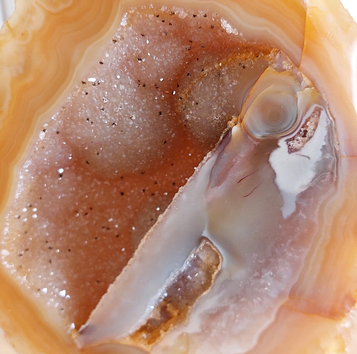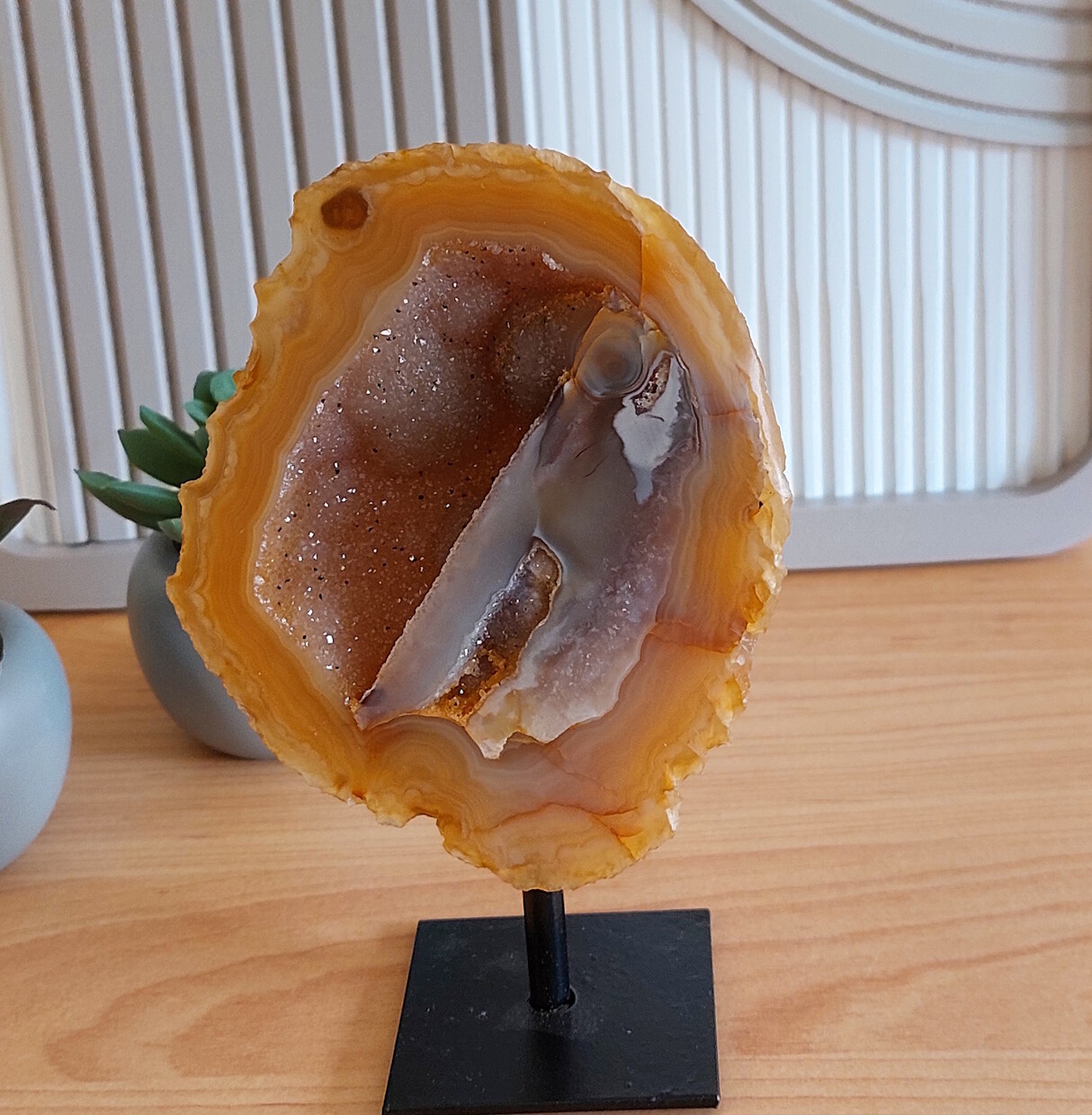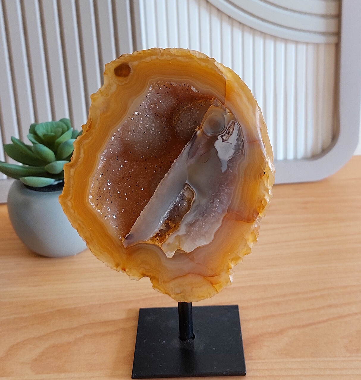 Agaat op standaard, met veel druzy / glitters. Een ware eyecatcher in uw interieur.