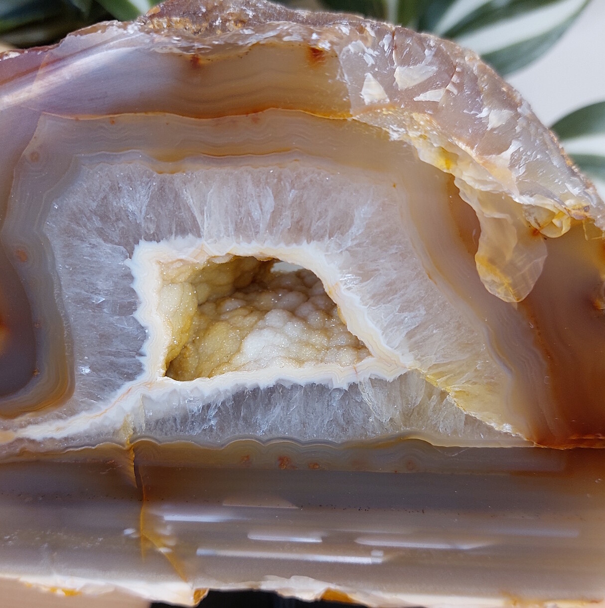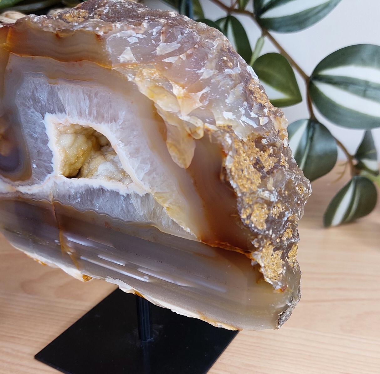 Agaat op standaard met prachtige schitterende chalcedoon. Een ware eyecatcher!
