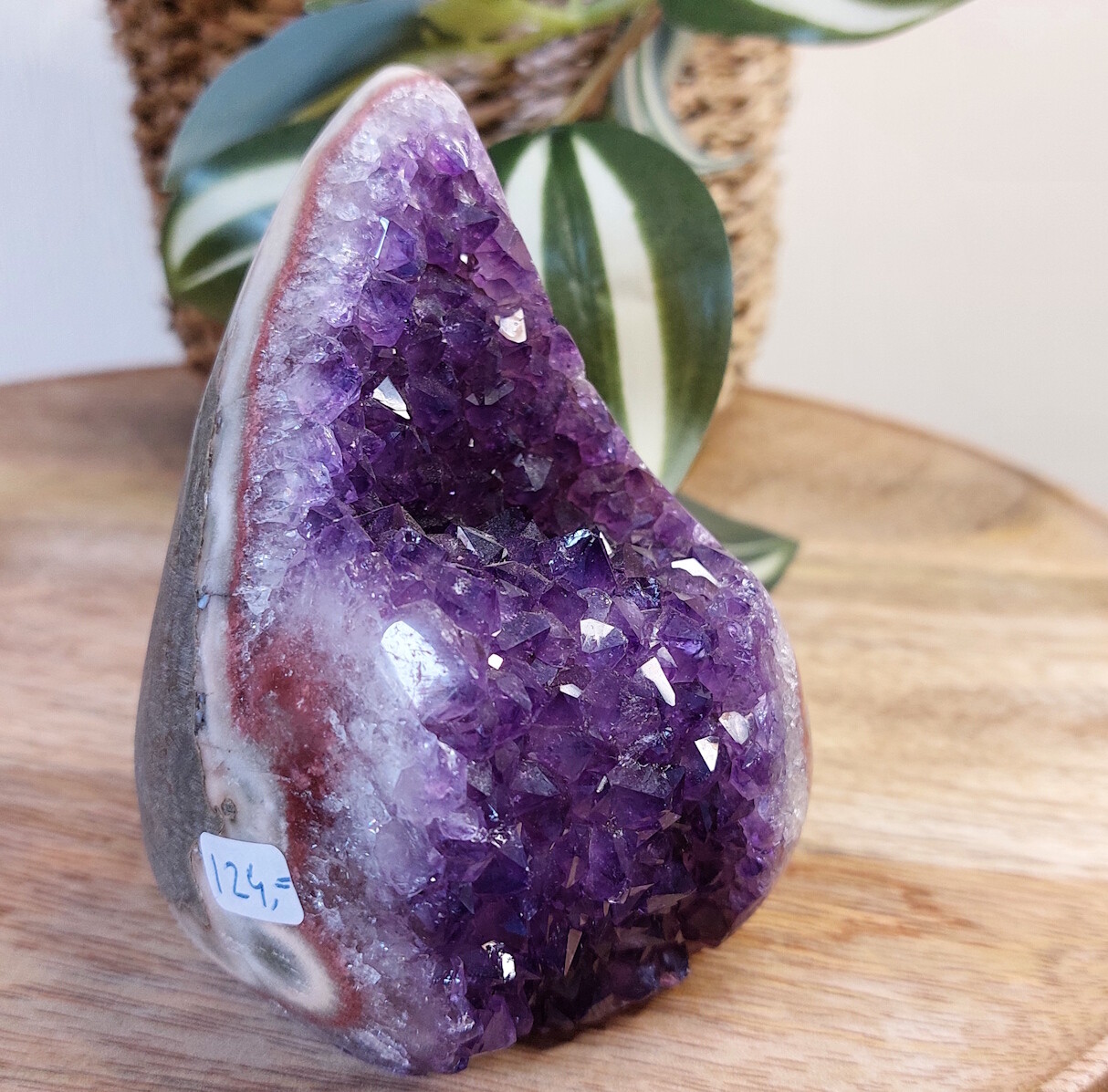 Amethist vlam sculptuur. Een sieraad voor in het interieur, deze amethist met zijn diep paarse kleur.