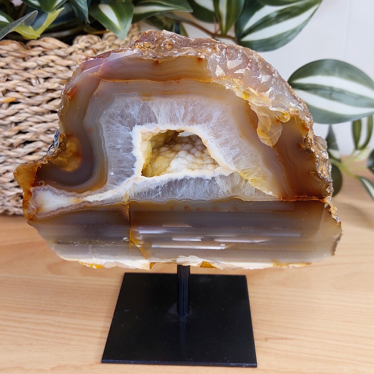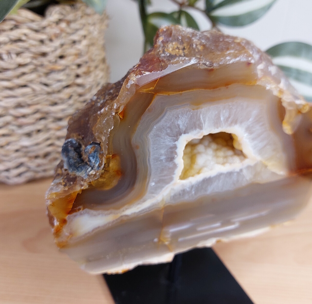 Agaat op standaard met prachtige schitterende chalcedoon. Een ware eyecatcher!