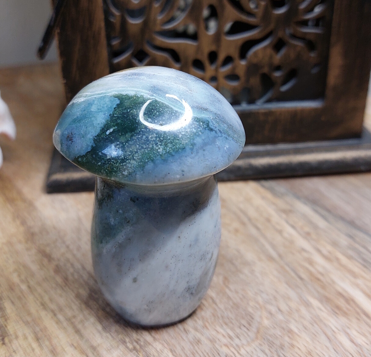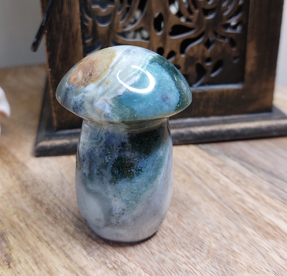 Paddenstoel van oceaan jaspis. Mooi voor in de herfst decoratie.