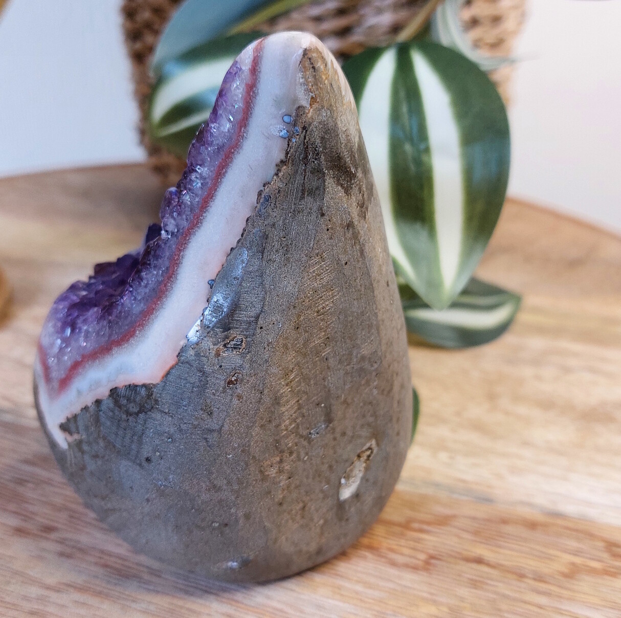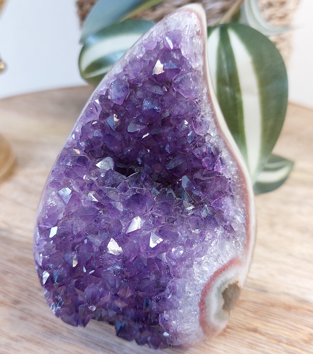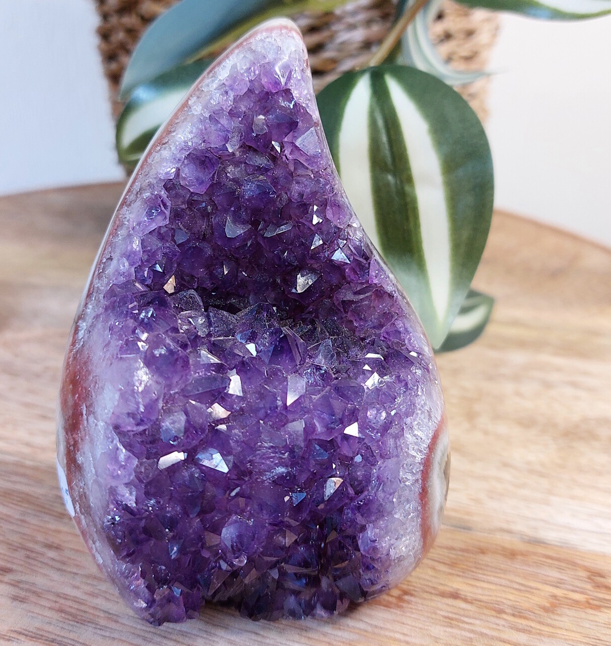 Amethist vlam sculptuur. Een sieraad voor in het interieur, deze amethist met zijn diep paarse kleur.