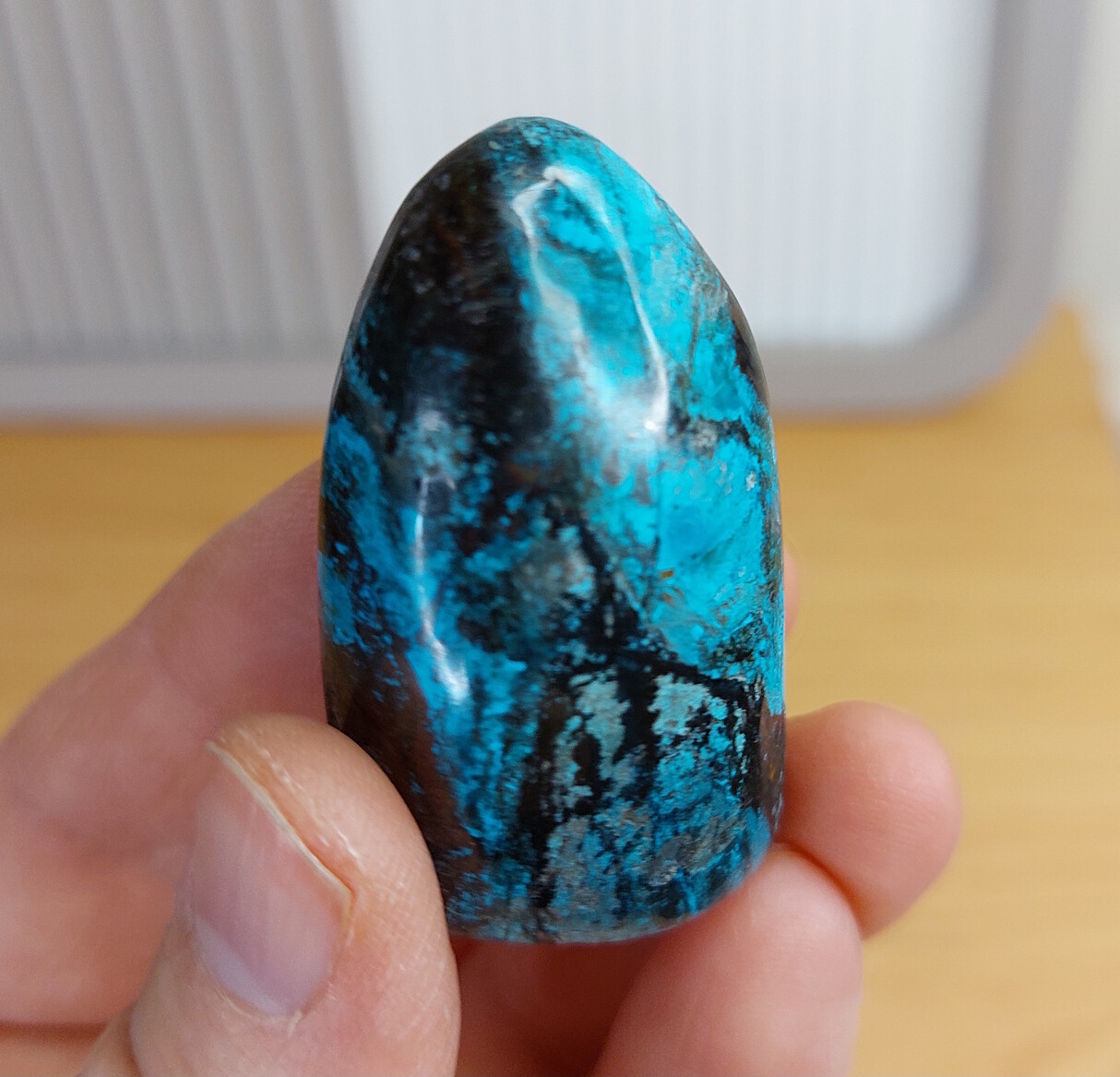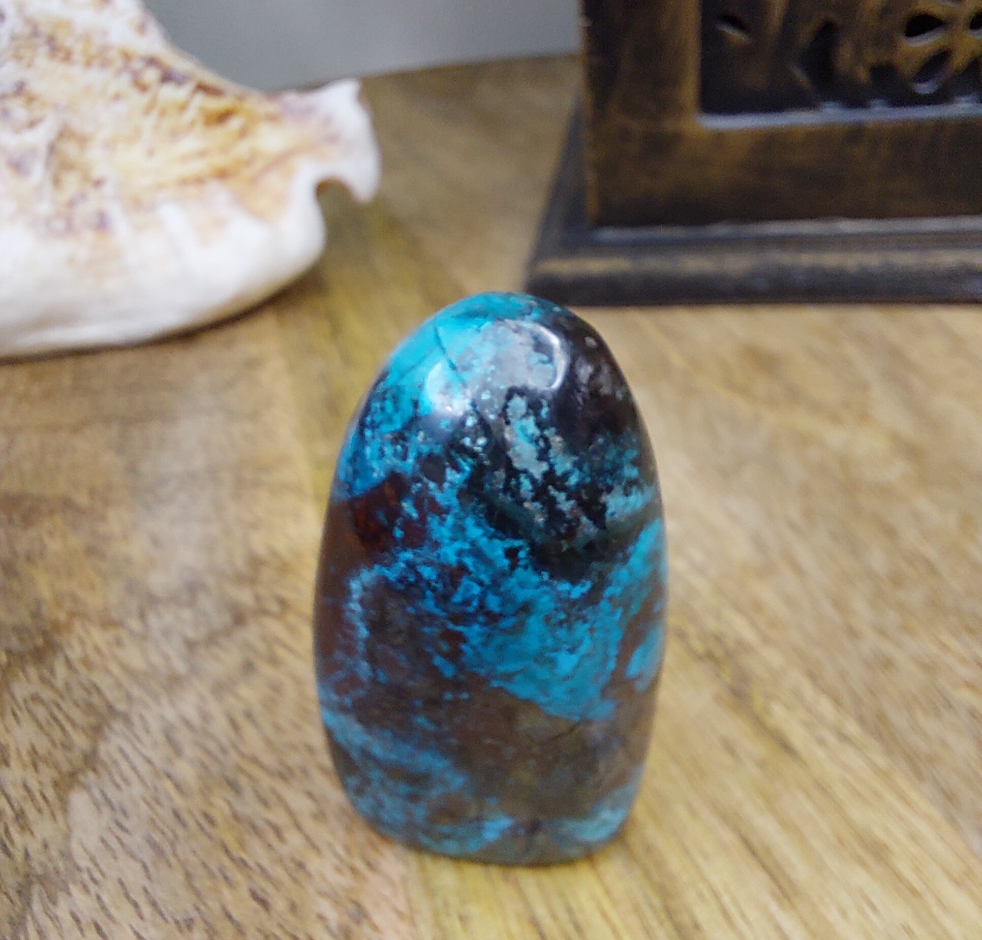 Chrycoscolla creëert een sterk zelfbewustzijn. De steen kan helpen bij verwerken van verdriet en het begrijpen van emeoties.