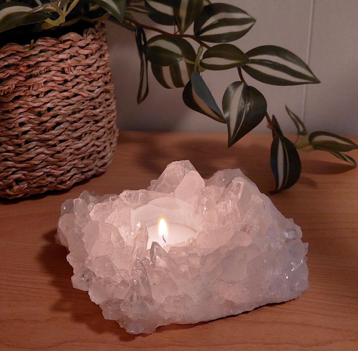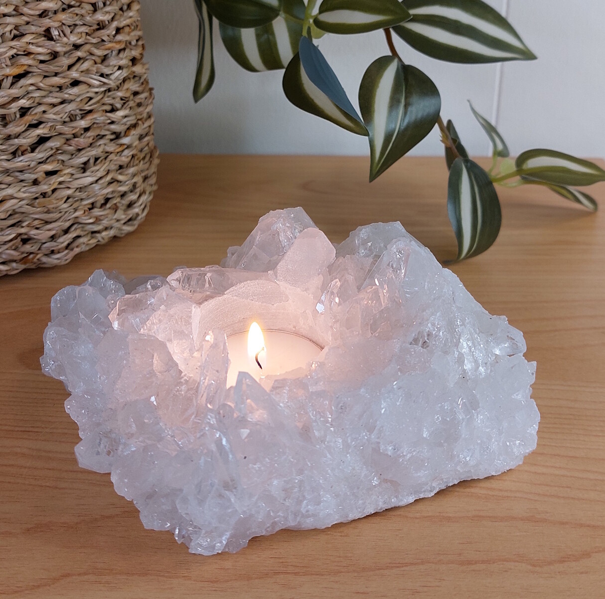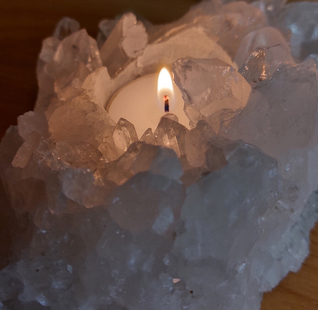 Bergkristal waxinelichthouder. Een sfeerbrenger in de donkere dagen!